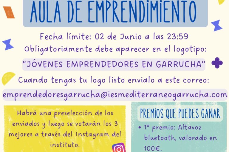 ¡Volvemos con otro concurso de logotipos! Ésta vez es para nuestra AULA DE EMPRENDIMIENTO que vamos a instalar en el…