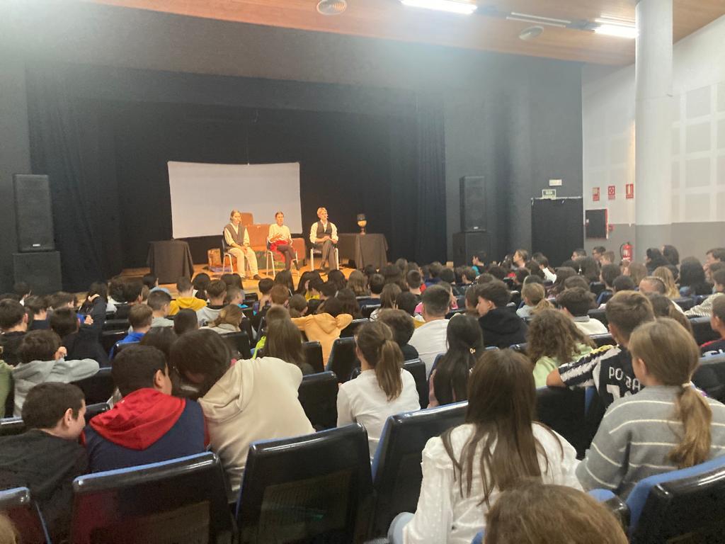Los alumnos de Primero de ESO A,B,C,D y E disfrutan de la obra de Teatro: «La vuelta al mundo en 80 días” de Julio Verne. Disfrutan de una adaptación teatral de la gran novela de Julio Verne. Se acercan a un clásico que les anima a leer posteriormente la obra. Les sorprende cómo los actores encarnan diversos personajes y los juegos de luces utilizados proyectando figuras diminutas para dar realismo a la escena.