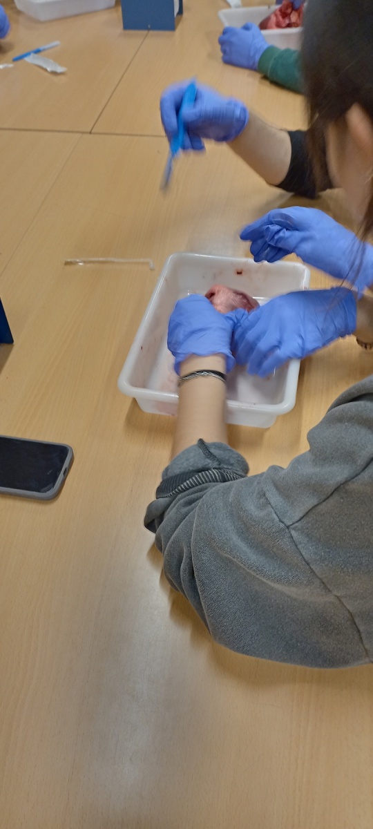Aprovechando la festividad del día de los enamorados, San Valentín, los alumnos de 1° de bachillerato de ciencias de la salud del IES Mediterráneo diseccionando corazones.