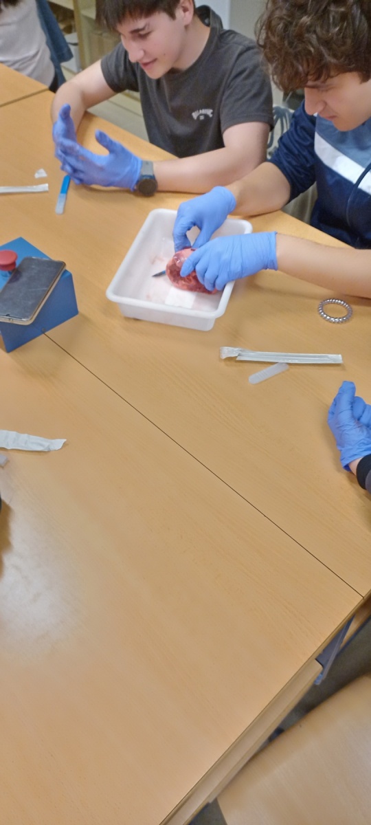 Aprovechando la festividad del día de los enamorados, San Valentín, los alumnos de 1° de bachillerato de ciencias de la salud del IES Mediterráneo diseccionando corazones.