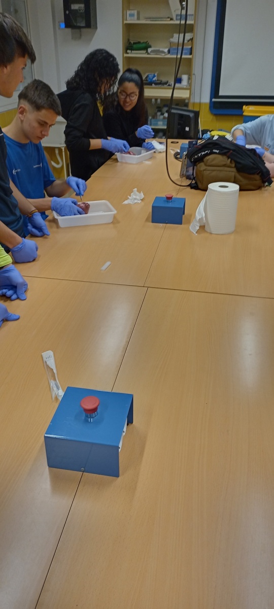Aprovechando la festividad del día de los enamorados, San Valentín, los alumnos de 1° de bachillerato de ciencias de la salud del IES Mediterráneo diseccionando corazones.