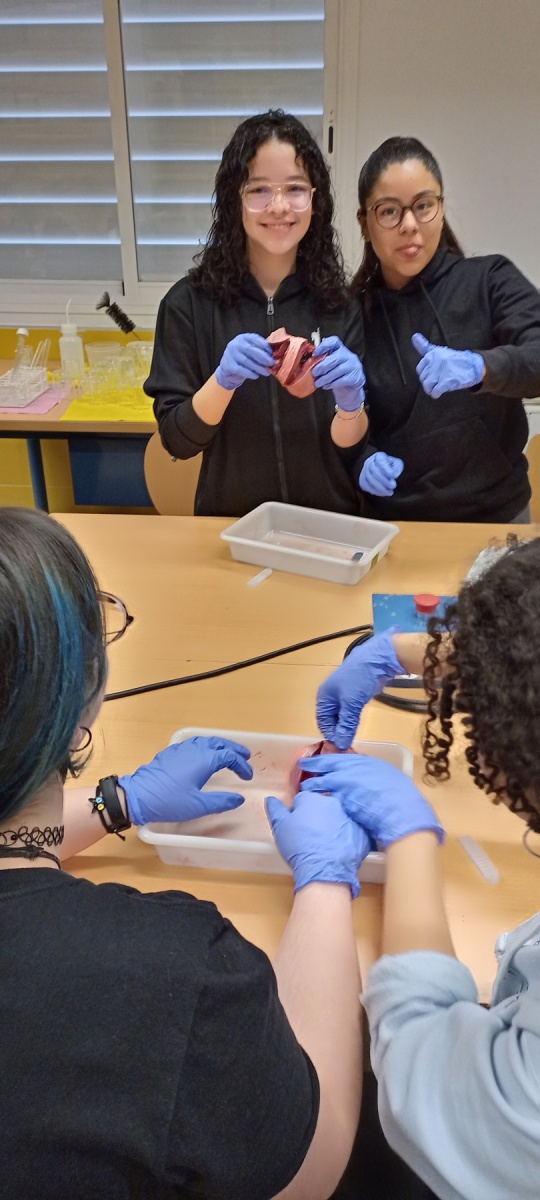 Aprovechando la festividad del día de los enamorados, San Valentín, los alumnos de 1° de bachillerato de ciencias de la salud del IES Mediterráneo diseccionando corazones.