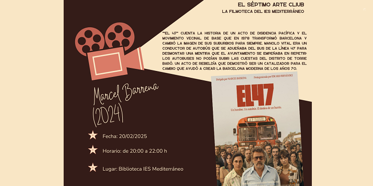 Se comunica que la próxima proyección de la Filmoteca del IES Mediterráneo será El 47 (2024).