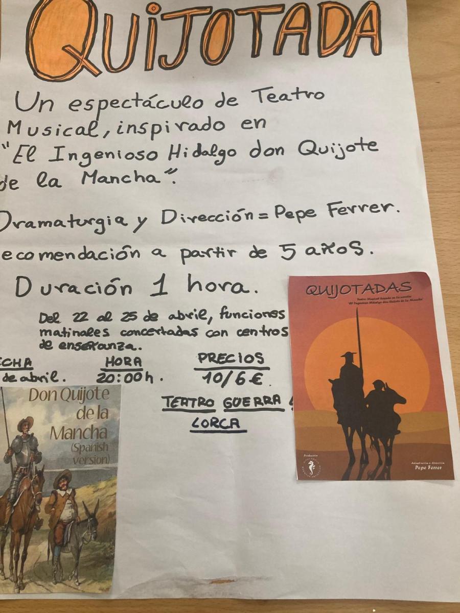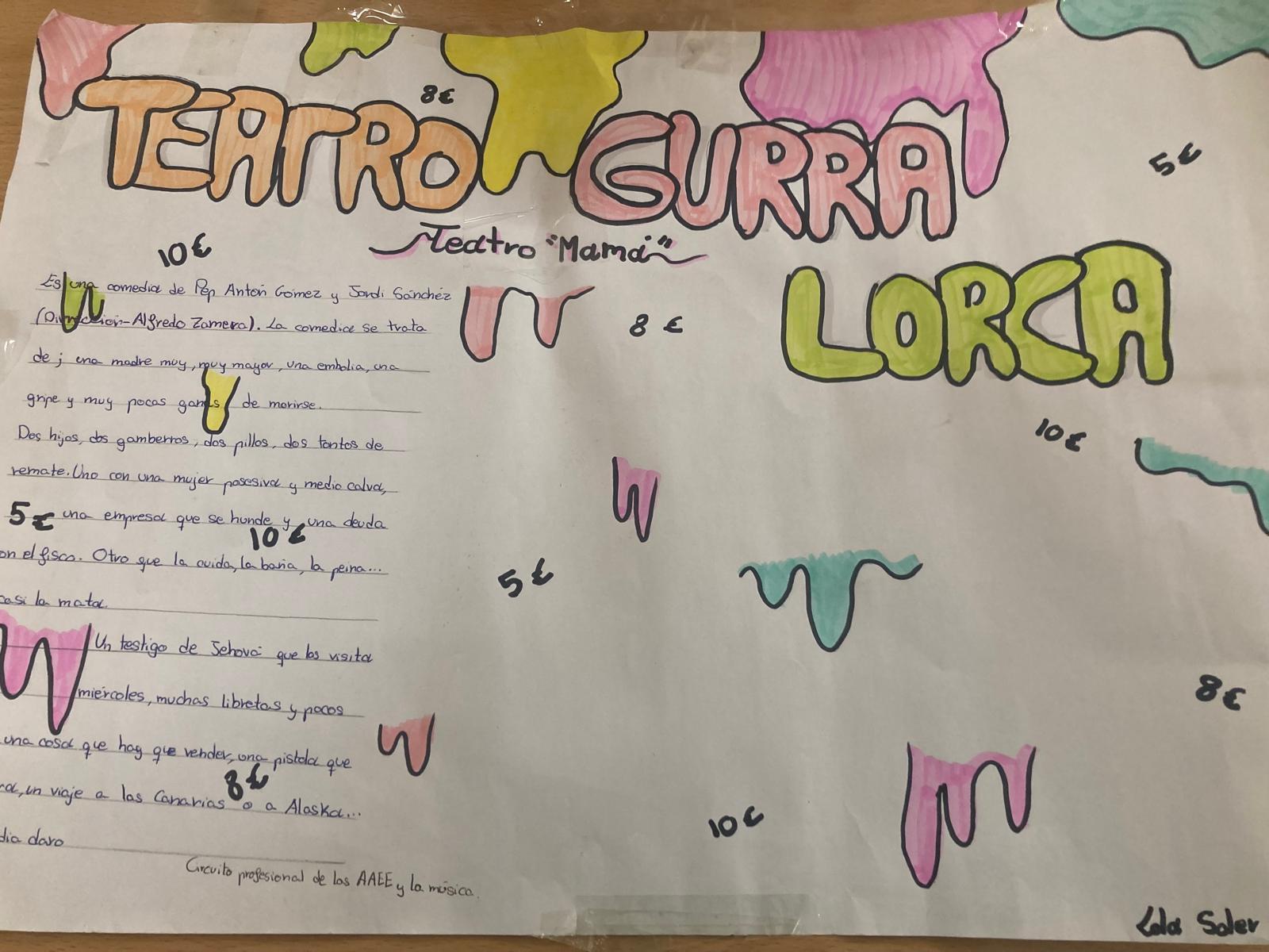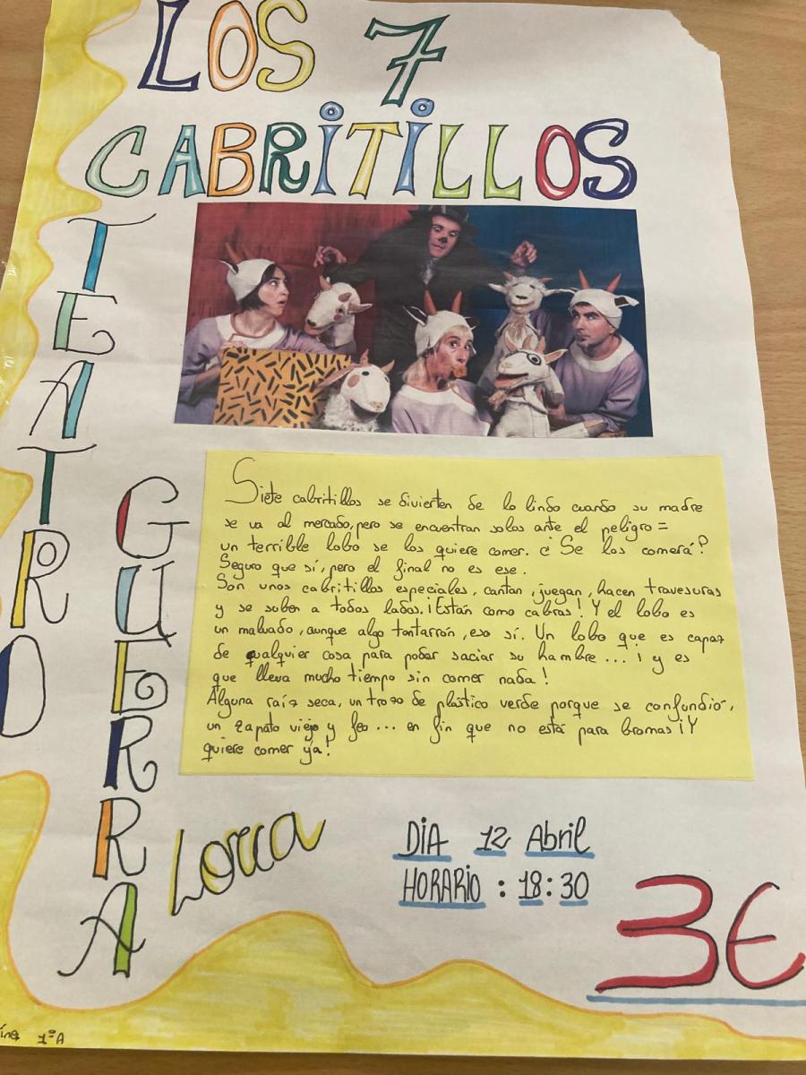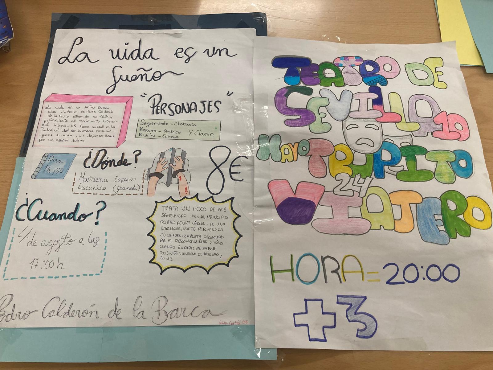 Con motivo del Día del libro los alumnos de 1o ESO realizaron carteles publicitarios animando a ir al teatro. Esto formaba parte de una actividad de activación en la que son conscientes de la oferta cultural que hay en la zona y a la que pueden acceder.