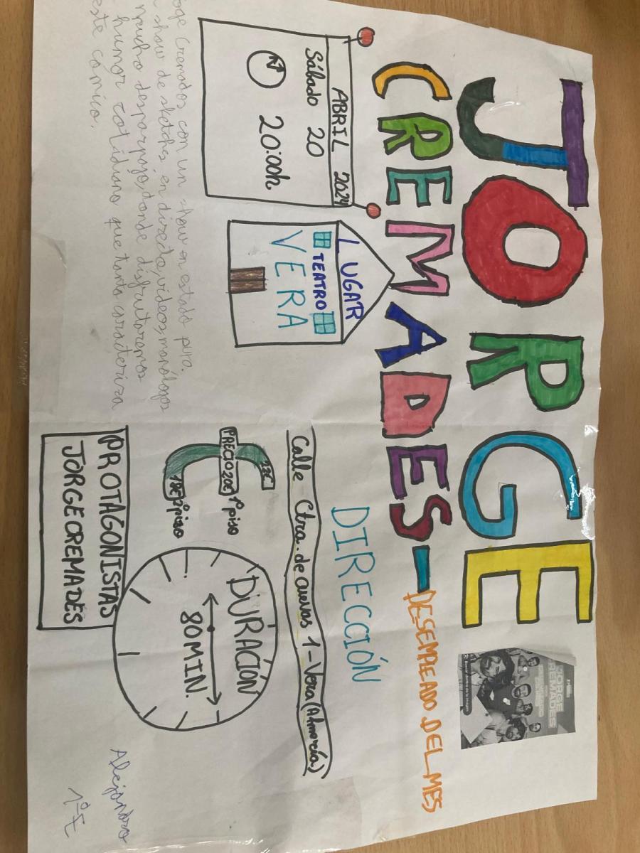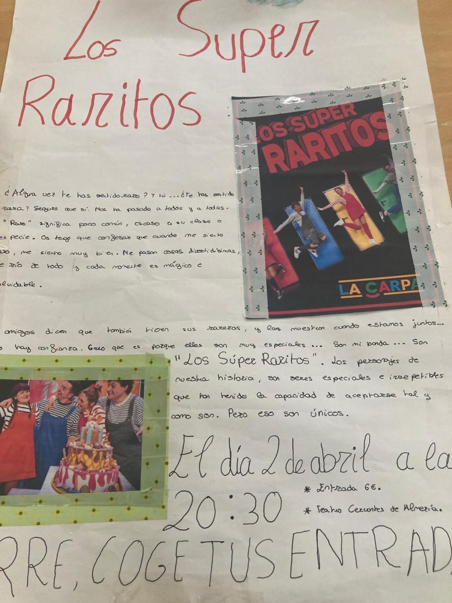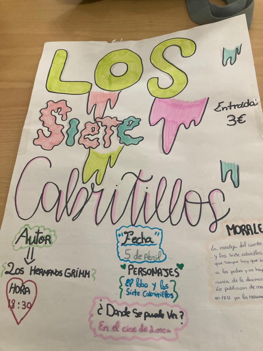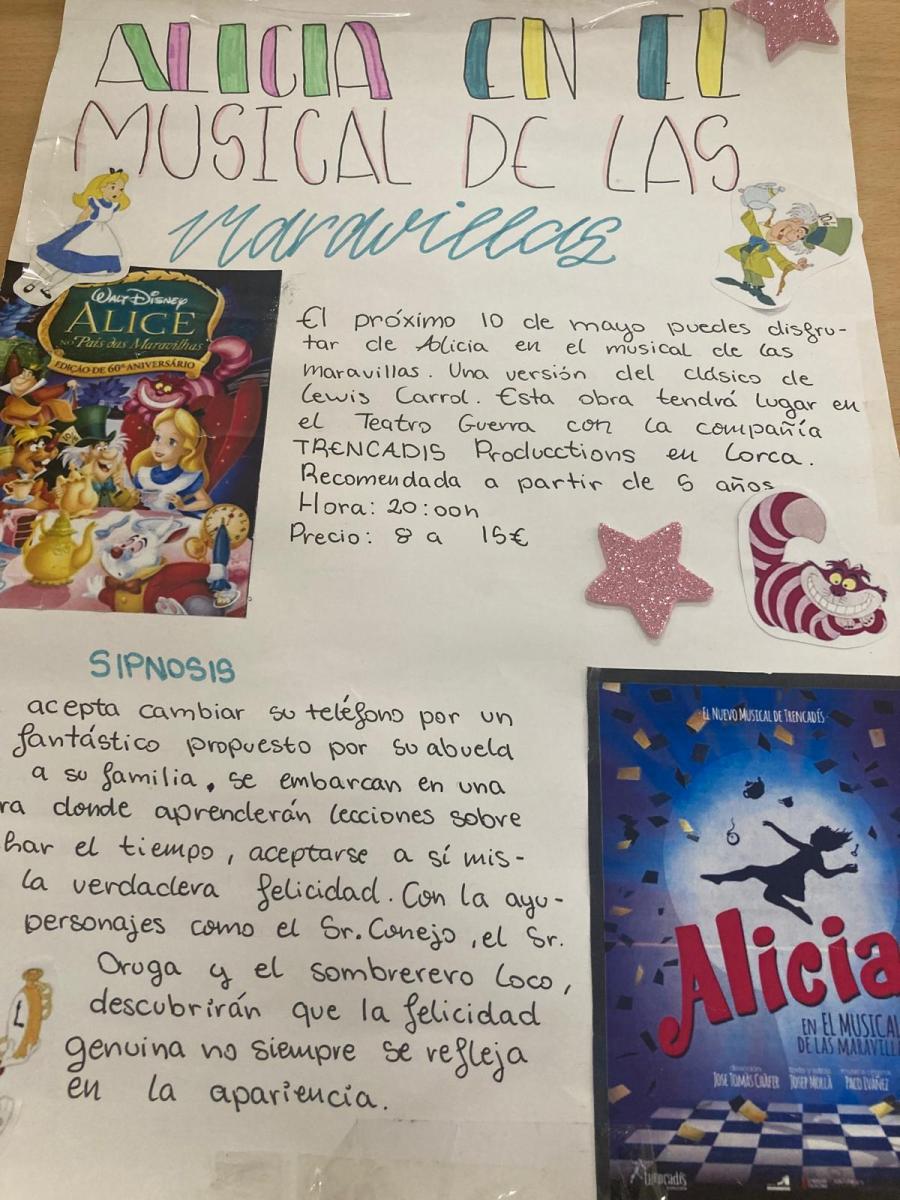Con motivo del Día del libro los alumnos de 1o ESO realizaron carteles publicitarios animando a ir al teatro. Esto formaba parte de una actividad de activación en la que son conscientes de la oferta cultural que hay en la zona y a la que pueden acceder.